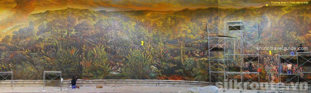 Tác phẩm để đời với lối kết hợp bích họa ở phông nền với sa bàn (diorama) ở phía trước. Thông tin phổ biến cho biết đây là bức bích họa sơn dầu 360 độ chu vi 132m, cao 20,5m, đường kính 42m, tổng diện tích là 3.225m², tổng cộng 4500 nhân vật do 20 họa sĩ vẽ suốt 750 ngày mới xong. Để xem và hiểu thì cần nắm rõ 4 trường đoạn.