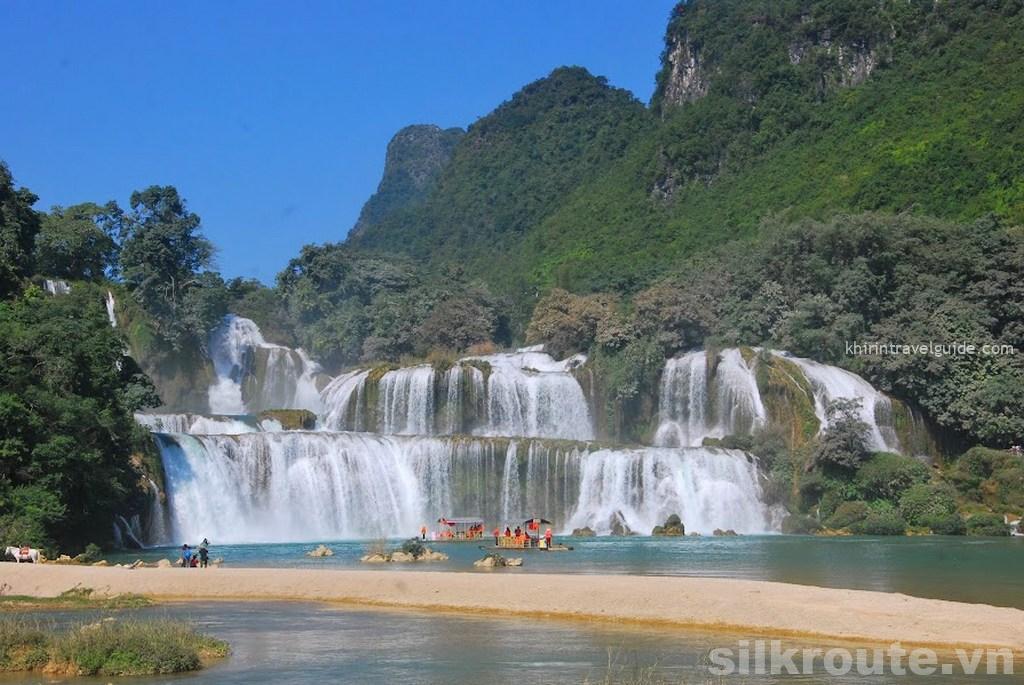 Widely agreed most beautiful waterfall in Vietnam. Ban Gioc on Quay Son River is agreable by many the most beautiful waterfall in Vietnam. From the city center of Cao Bang you need to travel the 110km journey to reach Ban Gioc. The distance is pretty long but it is made up by the scenic landscape over the mountains.